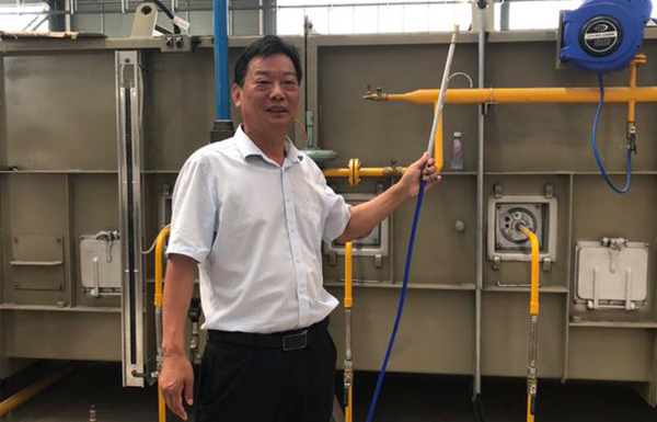 2011年公司第四代技術員黃小毛陪同黃崇褀院士參觀車間